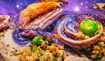 Transfer the mixture to a 10×15-inch rimmed baking sheet and bake for 1 hour and 15 minutes, or until the stuffing is very tender. Remove the stuffing from the oven and let sit on the baking sheet for 20 minutes before carving.
